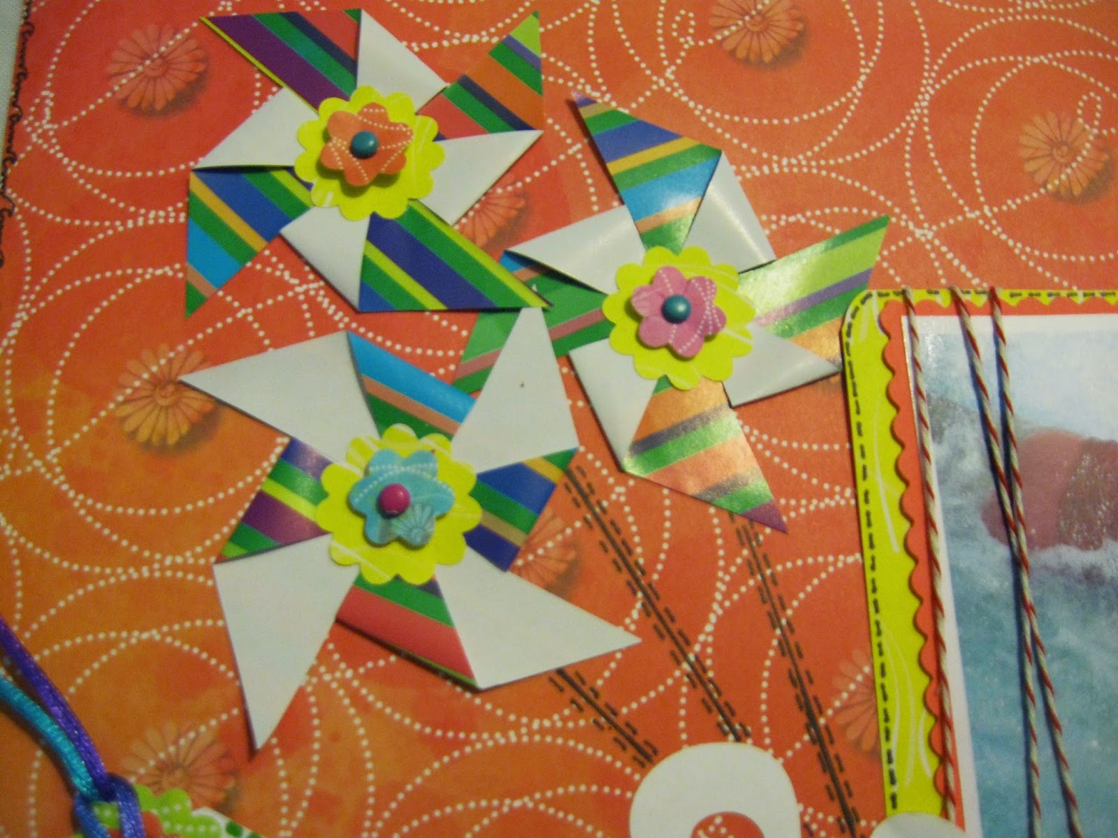 y unos molinillos de viento o " pinwheel" realizados con papel de regalo, les paso el procedimiento de confección pero segurísimo que en su infancia hicieron muuuuuuuuuchos!!!